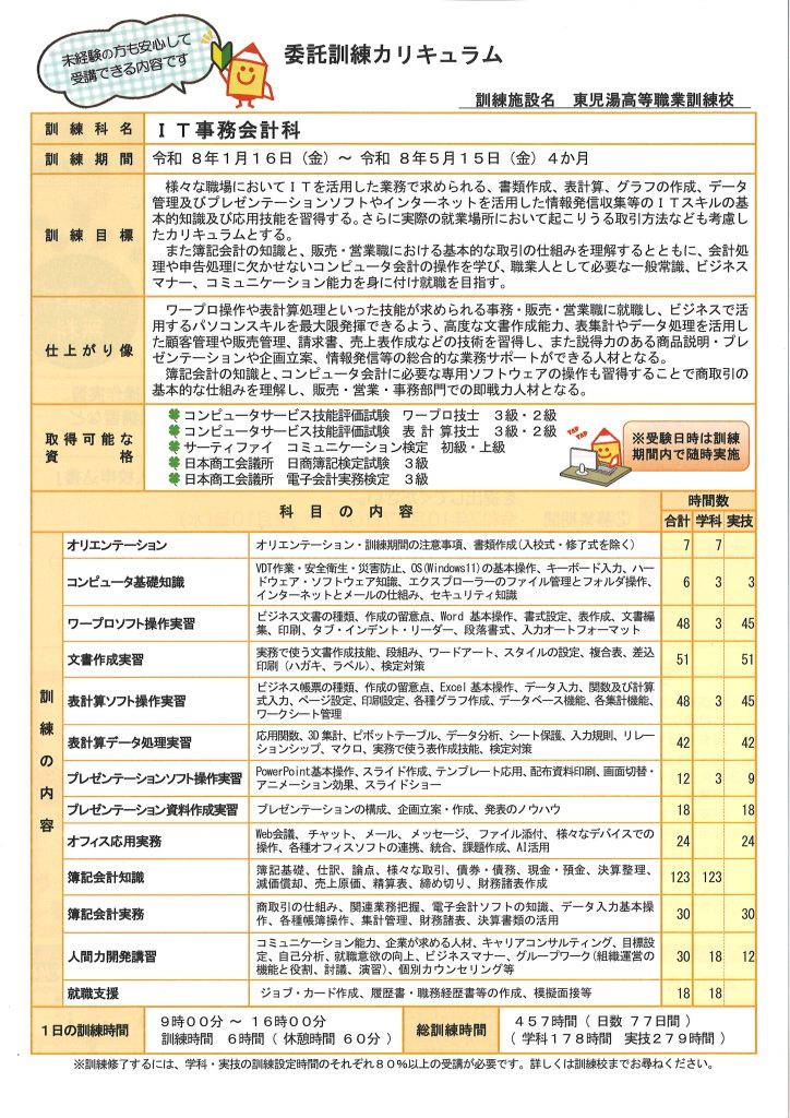 こちらで印刷、保存ができます→IT事務会計科受講者募集PDF